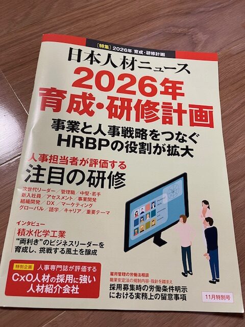 このたび、人材ニュース社様の人事専門誌『日本人材ニュース 11月特別号』に